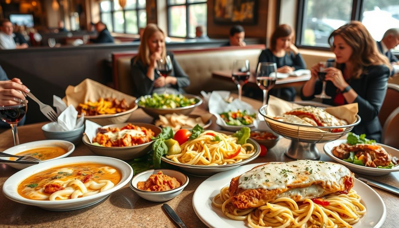 Chicken Parmigiana and Lasagna Classico are top picks. They’re known for great taste and big servings. Chicken Parmigiana has crispy chicken with marinara and cheese. Lasagna Classico boasts layers of meat sauce, cheese, and herbs.